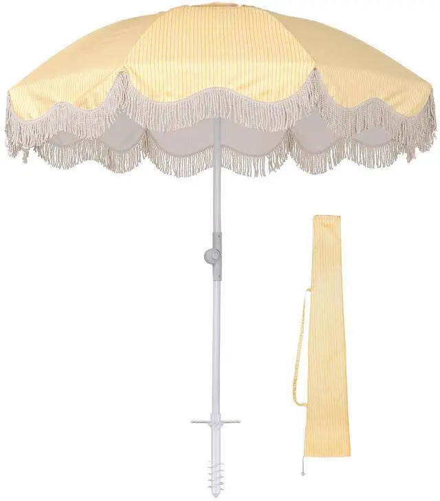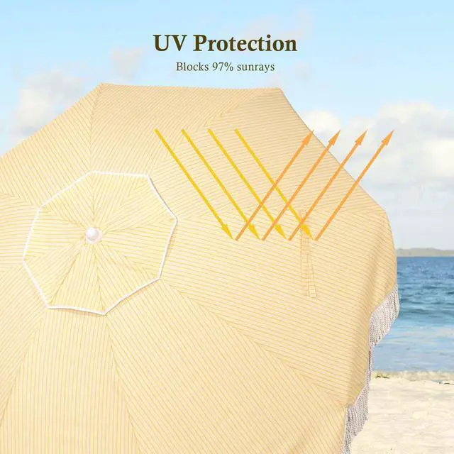 - Yellow Striped Umbrella with Sand Anchor - this combo includes a 6ft beach umbrella with cotton fringes and a sand anchor, allowing you to set up the umbrella on the beach securely without tools, easy to enjoy your vocation in summer