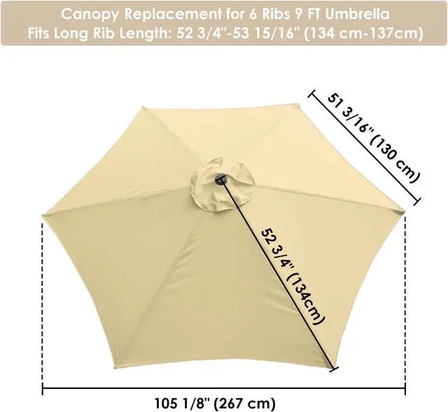 - Universal Cover Replacement - 9 ft Universal Replacement Umbrella Canopy fits 9ft umbrella with 6ribs (4 5/12ft to 4 1/2ft in length), to change your old umbrella with brand new top cover, also new color for good mood to brighten up your day
