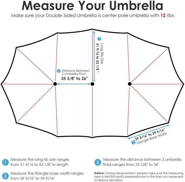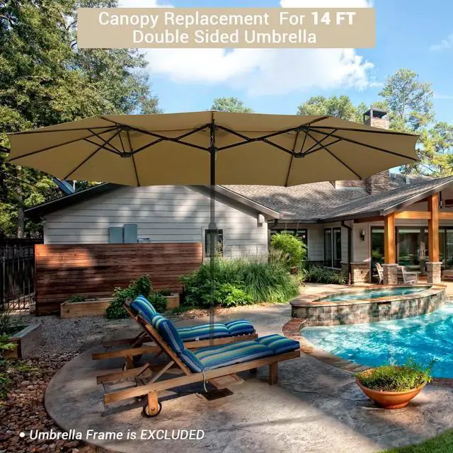 - Universal Cover Replacement - 14ft Replacement Double Sided Umbrella Canopy fits 14ft double sided umbrella with 12ribs (4 1/3 to 4 5/12 ft in length), to change your old umbrella with brand new top cover, also new color for good mood to brighten up your day