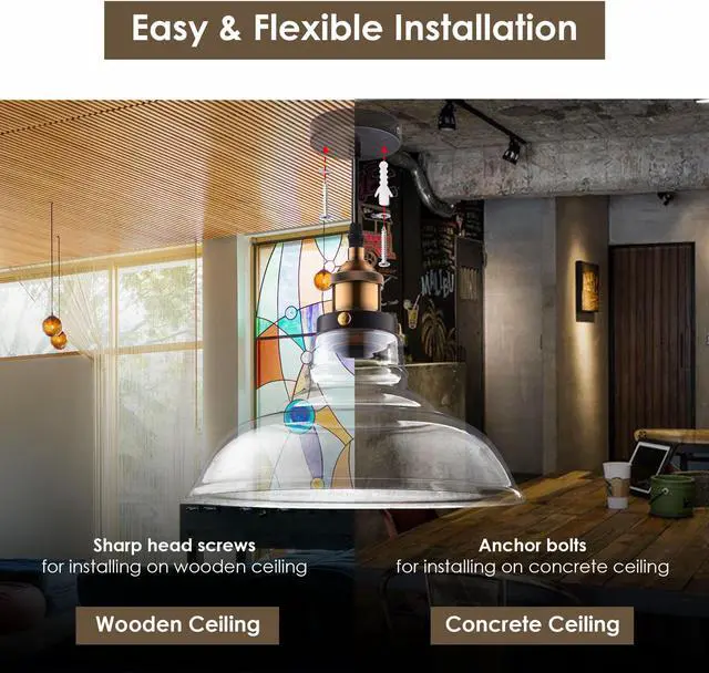 - Easy Installation - Includes expansion bolts for installing on concrete ceilings and self-tapping screws for installing on wooden ceilings, while its 59 1/16" adjustable power line caters to different ceiling heights for hassle-free and flexible installation