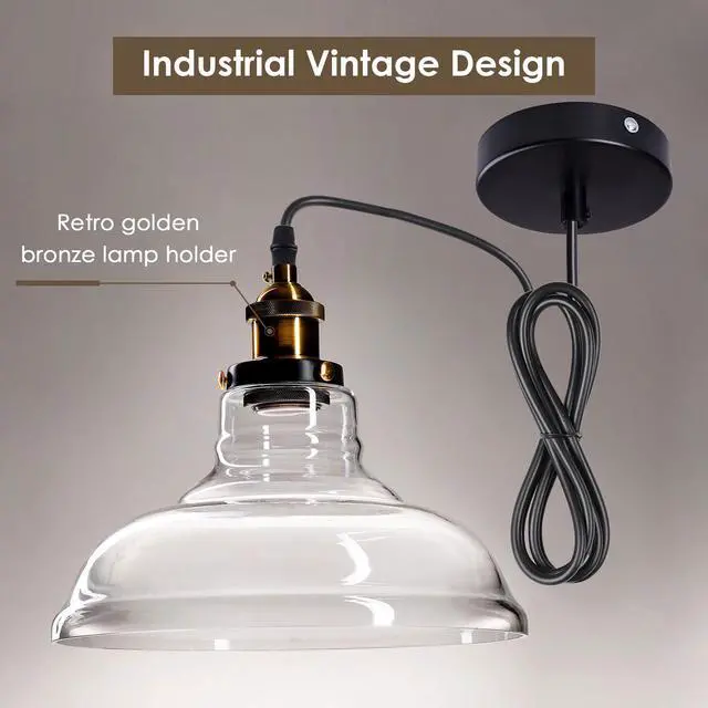 - Vintage Aesthetics - This Transparent Glass Ceiling Light features a unique dome shape and a golden bronze lamp holder, designed for use with Edison bulbs or other vintage bulbs, exuding a retro style and appearance which enhances the aesthetics and mood of your room, perfect for vintage, industrial or modern decor