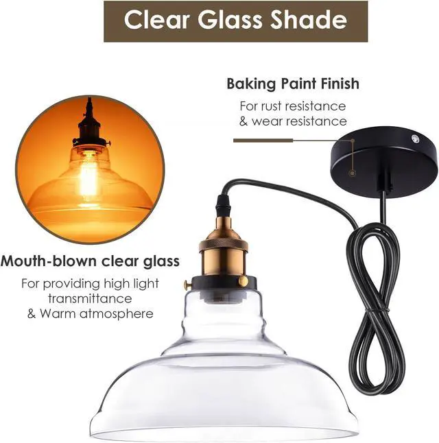 - Wide Illumination Area - With a lamp shade made of clear, mouth-blown glass, it features great transparency and enables for a wide illumination area with uniform lighting throughout