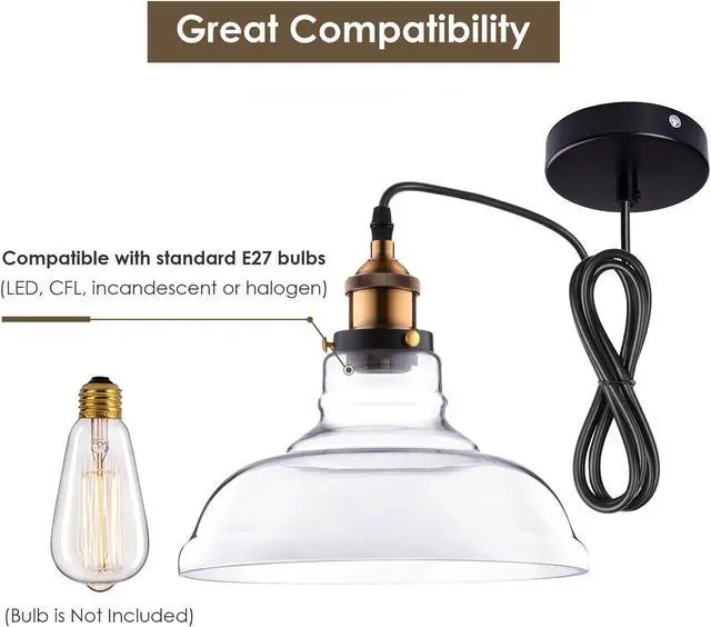 - Highly Compatible & Wide Application - The bulb holder is designed to be compatible with standard E27 bulbs (LED, CFL, incandescent or halogen) with a maximum power rating of 40W, ideal for hallways, dining rooms, kitchens, bedrooms, living rooms, farmhouses, restaurants, bars, etc.