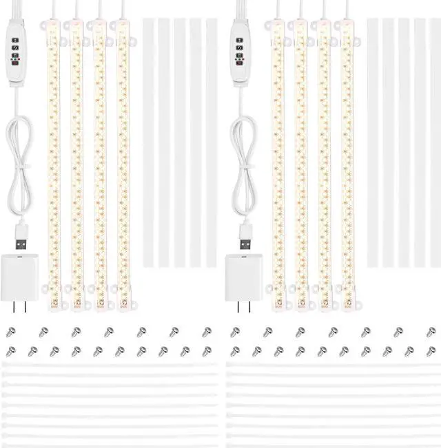 Full Spectrum- 2 Packs of 4-Strip Warm White LED Grow Lights include 2pcs grow lights and each grow light features 192 LEDs with wavelengths ranging from 380 nm to 780 nm, providing sufficient warm white light to improve the photosynthesis and growth of your plants, suitable for gardening enthusiasts to promote hydroponics and indoor cultivation