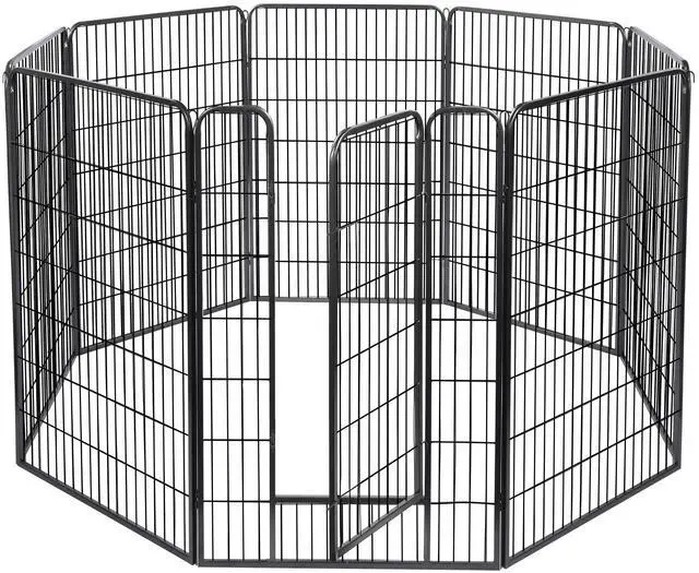 - Rust-resistant & Sturdy Fence - 8 pieces 28"Wx47"H Pet Playpen Panel is made of powder coated metal for great rust resistance, and keeping panel sleek and beautiful; 0.6"x0.6" square tube guarantees rigidity to withstand the weight of pet, ground stakes for firmly fixating the panels on the ground in outdoor space