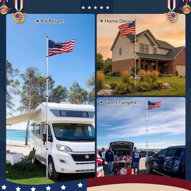 - Freely Fly Your American Pride - Show your independence, democracy, patriotic spirit and pride; Ideal for front yard, garden, patio and commercial use like company, government buildings, square, also suitable for holding cell booster antenna at the top and using for tailgating/camping decoration