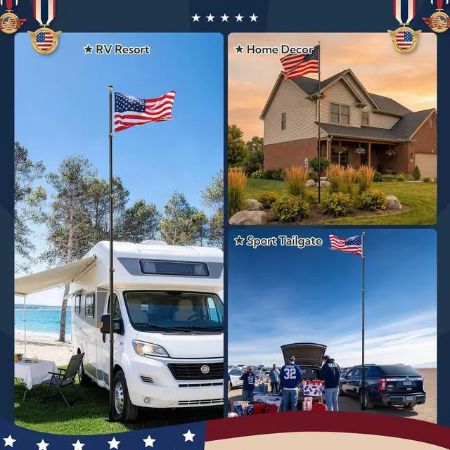 - Telescopic design pole can fly 2pcs 3x5ft flags at the same time or fly only 1 pcs 4x6ft flag; Material Flag: 100% Polyester; Import Designation: Imported.
