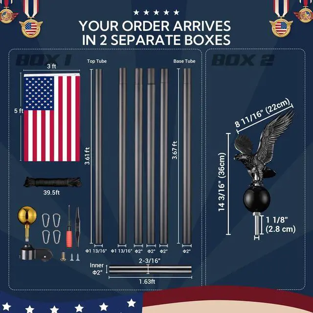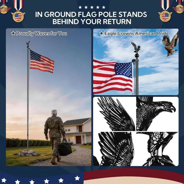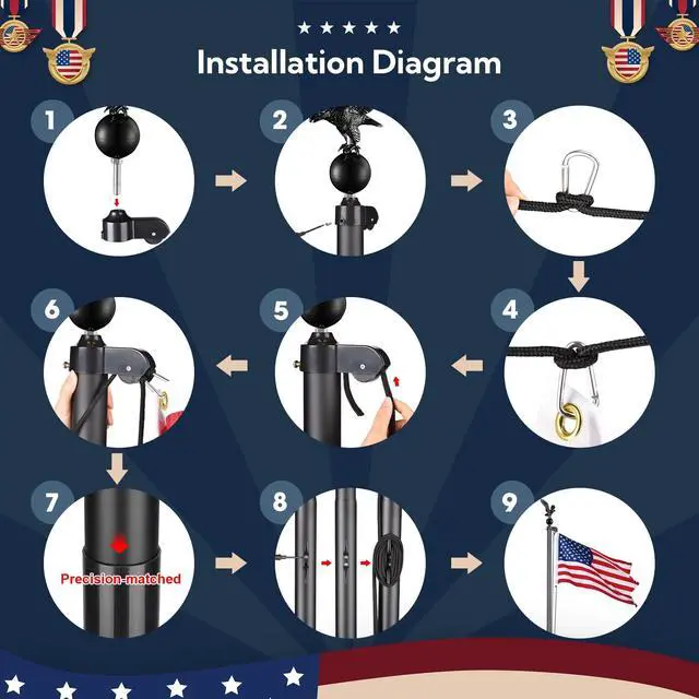 - Unique Flying Eagle - The black flying eagle design with a ball makes it look catching, combining with the sleek appearance of the flagpole to ensure a decent display of your flag with honor and pride