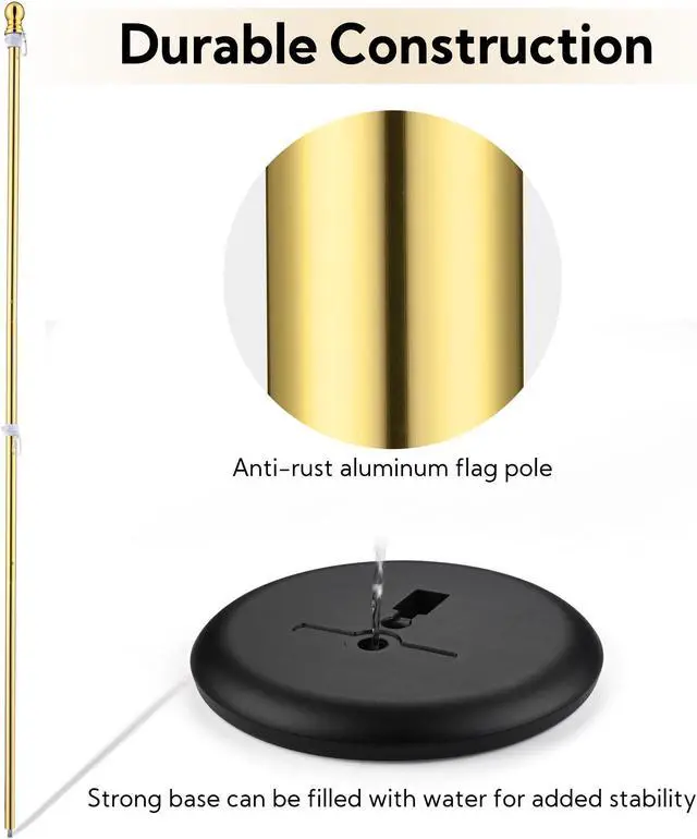 - Durable Construction - High-quality aluminum flagpole features premium rust and erosion resistance for long-term use, and strong base stand can be filled with water for added stability to keep the flagpole in place