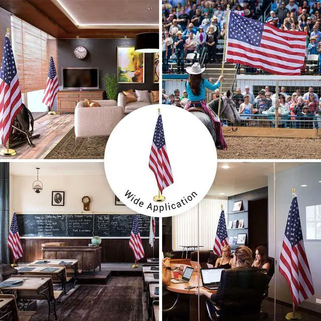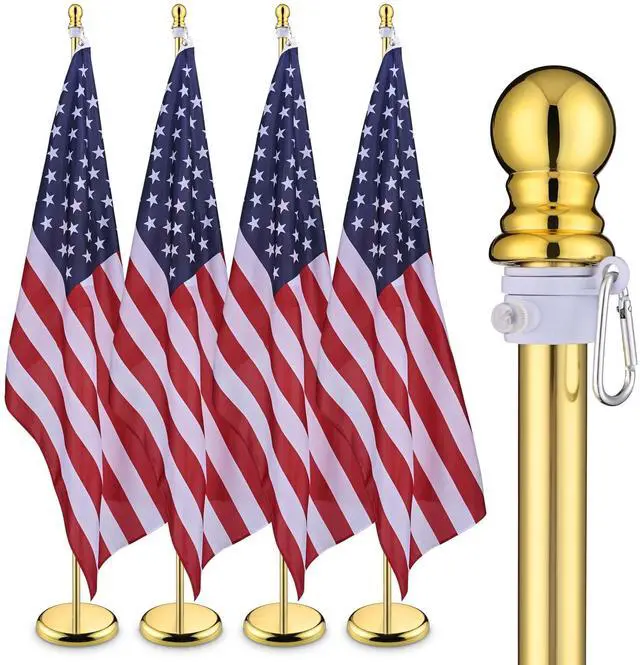 - Complete Flagpole Kit - Includes 4 pcs 6 ft indoor sectional flagpoles with gold ball finials, 4 pcs American national flags, 4 pcs base stands and accessories, one package for everything you need to display national flag indoors, perfect decoration for government agencies, institutions, corridor, hallway, office, embassy, school, city hall, church, military ceremony for veterans