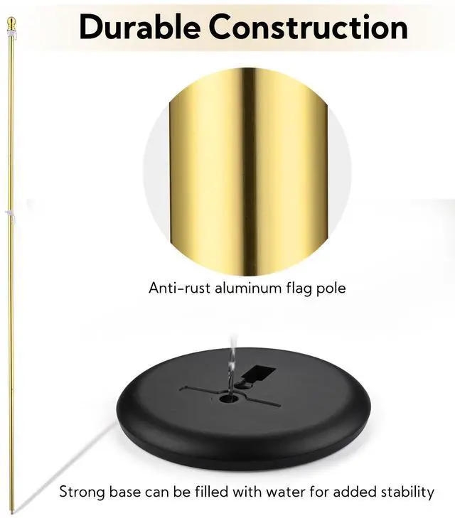 - Durable Construction - High-quality aluminum flagpole features premium rust and erosion resistance for long-term use, and strong base stand can be filled with water for added stability to keep the flagpole in place
