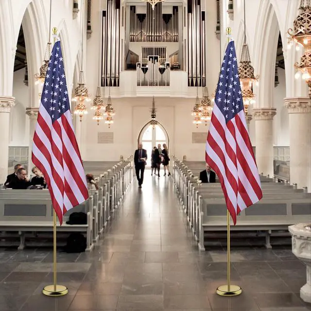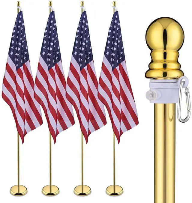 - Complete Flagpole Kit - Includes 4 pcs 8 ft indoor sectional flagpoles with gold ball finials, 4 pcs American national flags, 4 pcs bases, one package for everything you need to display national flag indoors, decoration for government agencies, institutions, corridor, hallway, office, embassy, school, city hall, church, military ceremonies
