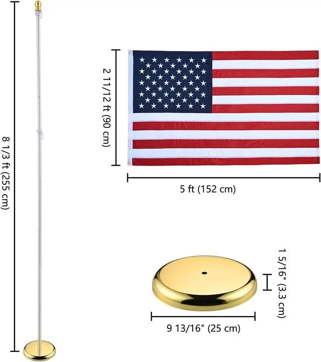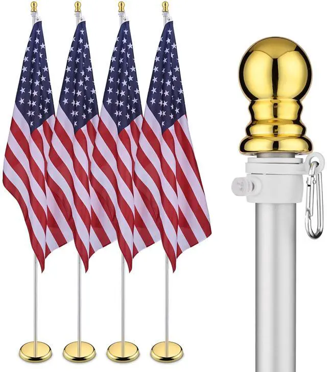 - 4 Pack Flagpole Kits - Includes 4 pcs 8 ft Indoor Sectional Flag poles, 4 pcs gold balls, 4 pcs American national flags, 4 base stands and 4 sets of accessories, great for using in government agencies, institutions, corridor, hallway, office, embassy, school or city hall, church, military ceremony, etc.