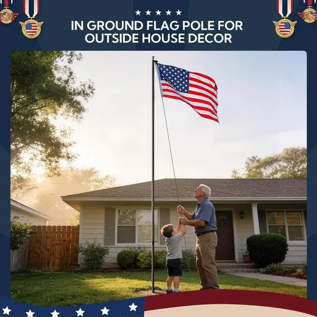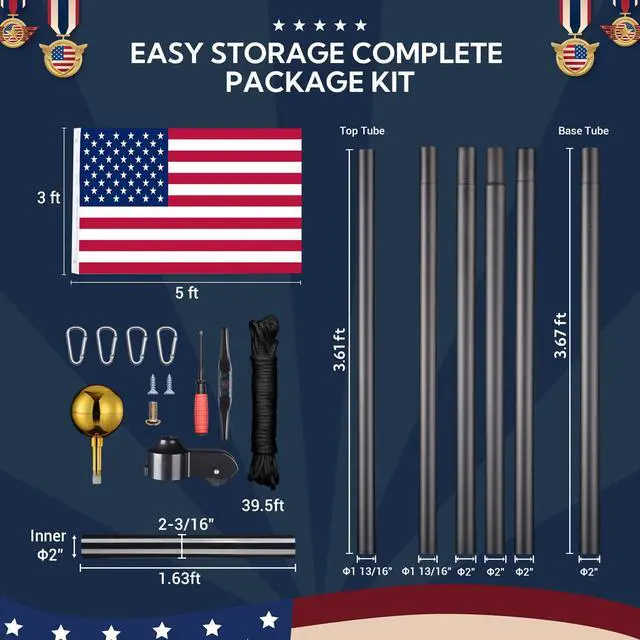 - What You Get: 1-Year Warranty for quality assurance; Unpack to use, includes flag poles, ball finial, American National Flag, carabiners, screws, screwdriver, rope and PVC sleeve for protecting the bottom of the pole against corrosion