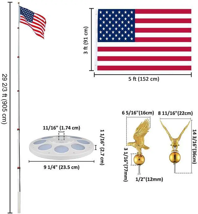 - Flagpole Adjustment Height 6 1/4 ft to 29 1/3 ft