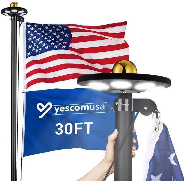 - 13 Gauge Solid Construction - 30ft Aluminum Sectional Flagpole Kit with golden ball finial features upgraded 13 Gauge aluminum tubes for higher wind resistance, durability and rust resistance, ensuring longtime use in front yard, beside house, garden, patio