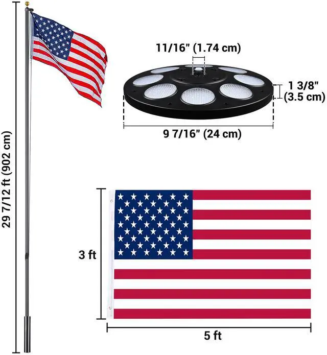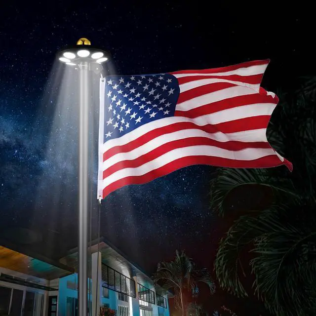 - Solar Flag Pole Light with 136 cool white LEDs bathes your flag in a brilliant, respectful glow, ensuring Old Glory's vibrant colors are visible day and night
