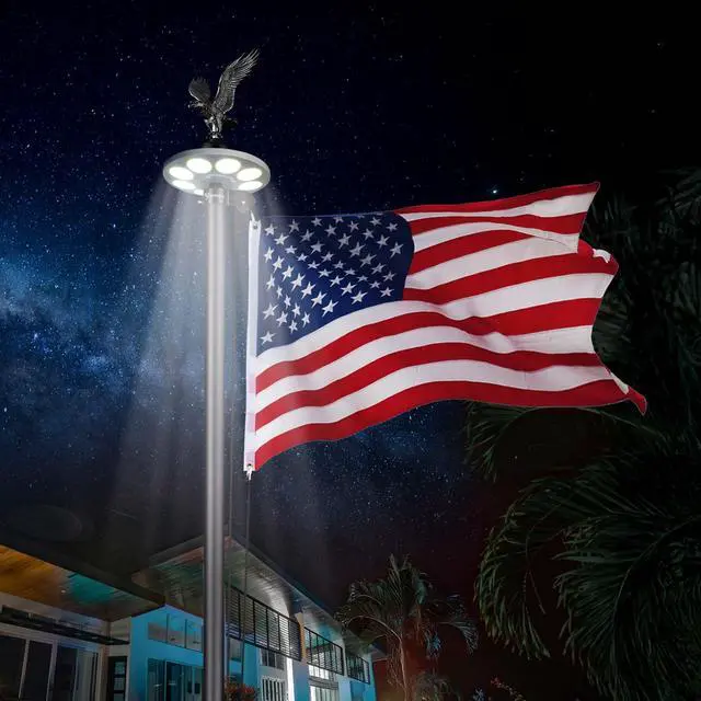 - Solar Flag Pole Light with 136 cool white LEDs emits 680 lumens of bright light, lighting up your flag & ornaments for eye-catching decoration