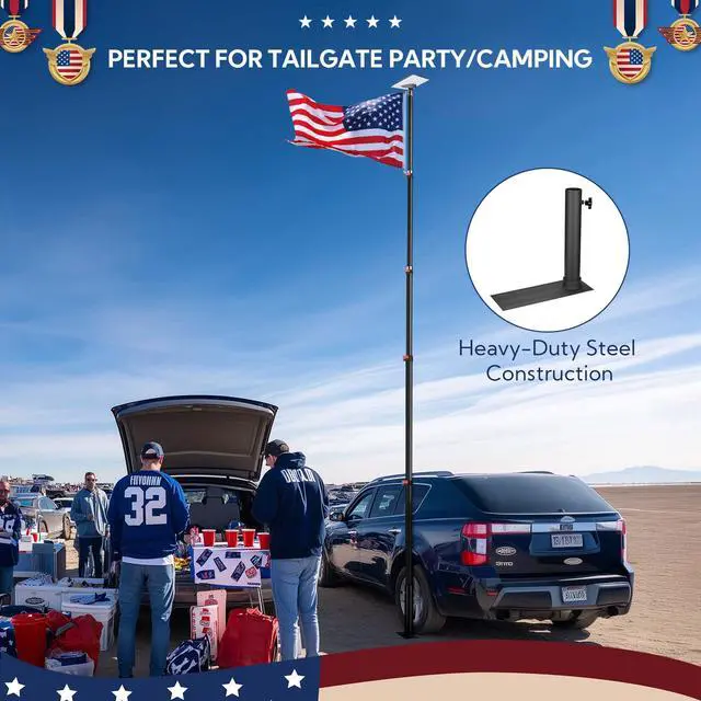 - Convenient & Flexible to Place - Universal Tire Mount Flagpole Base, fits flag pole with diameter less than 2 3/8" (6.1 cm), no fixated installation needed, putting it under your car wheel to stabilize, movable design for holding flagpole anywhere you park