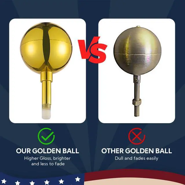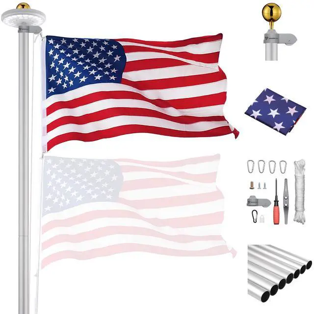 - 13 Gauge Solid Construction - 25ft Aluminum Sectional Flagpole Kit with golden ball finial features upgraded 13 Gauge aluminum tubes for higher wind resistance, durability and rust resistance, ensuring longtime use in front yard, beside house, garden, patio