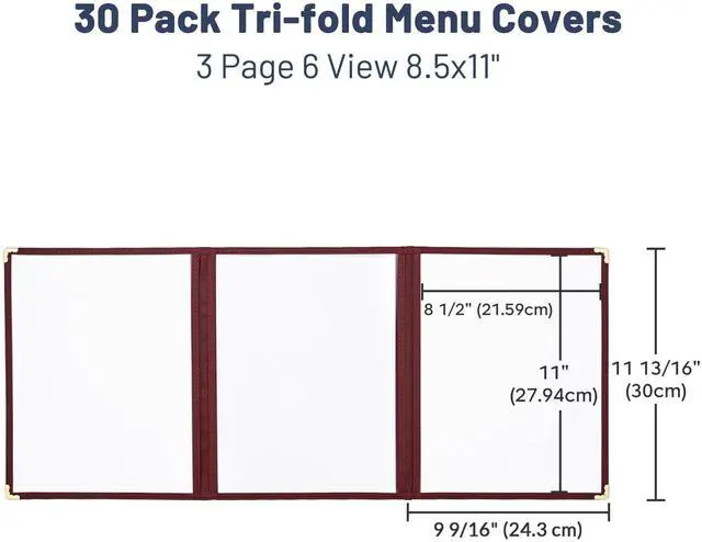 - Wide Application - This 30pcs 11"x8 1/2" WeChef Menu Cover includes 30 pieces triple-fold menu Covers with a total of 6 windows to display 3 menu pages on each side, perfect for holding 11"x8 1/2" letter-sized paper menus displaying daily specials, drink selections, or dessert options