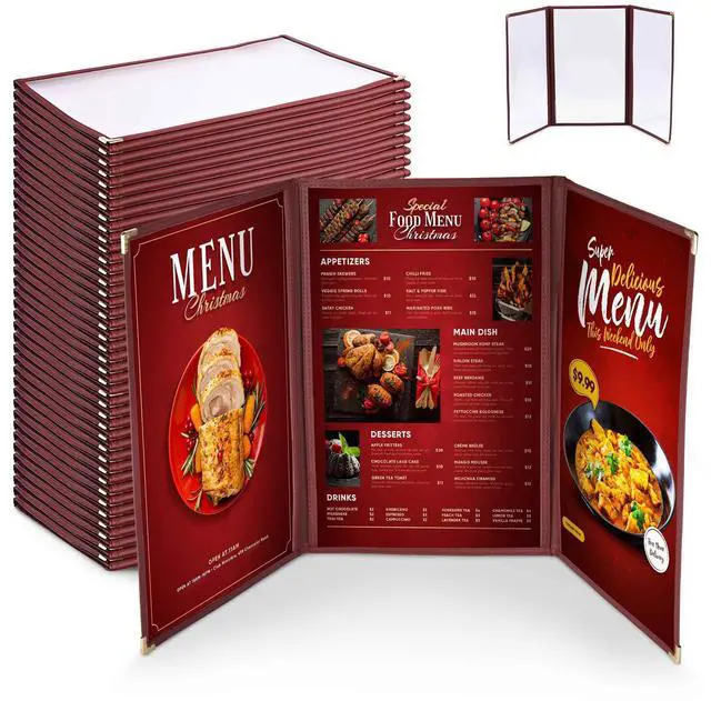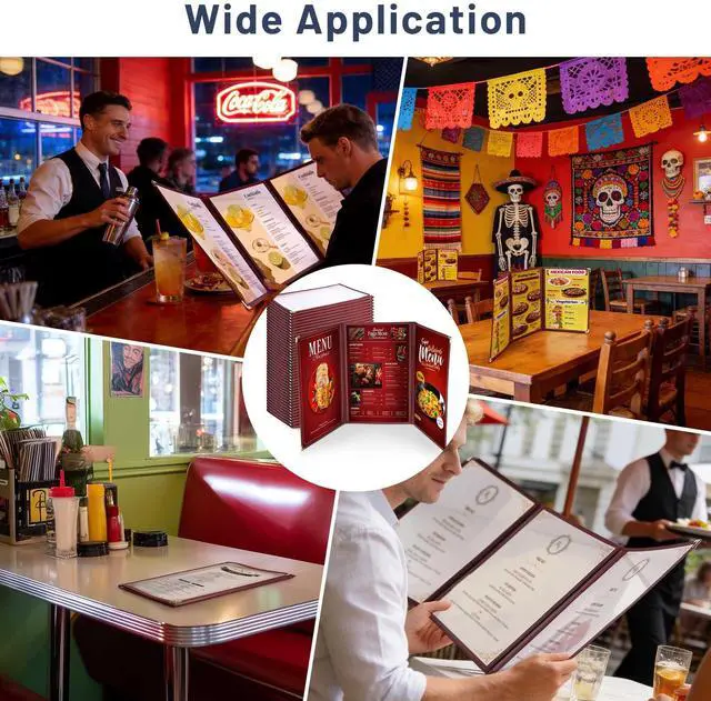 - Wide Application - This 30pcs 14"x8 1/2" Menu Cover includes 30 pieces triple-fold menu Covers with a total of 6 windows to display 3 menu pages on each side, perfect for holding 14"x8 1/2" letter-sized paper menus displaying daily specials, drink selections, or dessert options