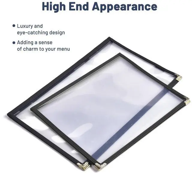 - Visible & Protective - Features transparent PVC Covers to display your menus clearly, while keeping them clean and protected, even with frequent and consistent use, perfect daily-use menus in restaurants, hotels, cafe, porterhouses, nosheries, pubs, bars, etc.