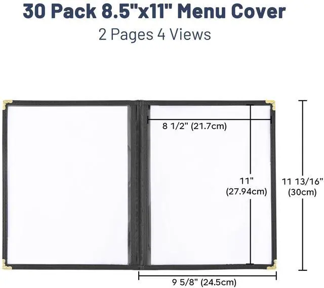 - Multifunctional - This 30pcs 11"x8 1/2" Menu Cover includes 30 pieces of booklet-style menu Covers with a total of 4 windows to display menu pages, perfect for holding 11"x8 1/2" letter-sized paper menus displaying daily specials, drink selections, or dessert options, ideal for use in restaurants, hotels, bars, kitchen, cafe or wedding venues