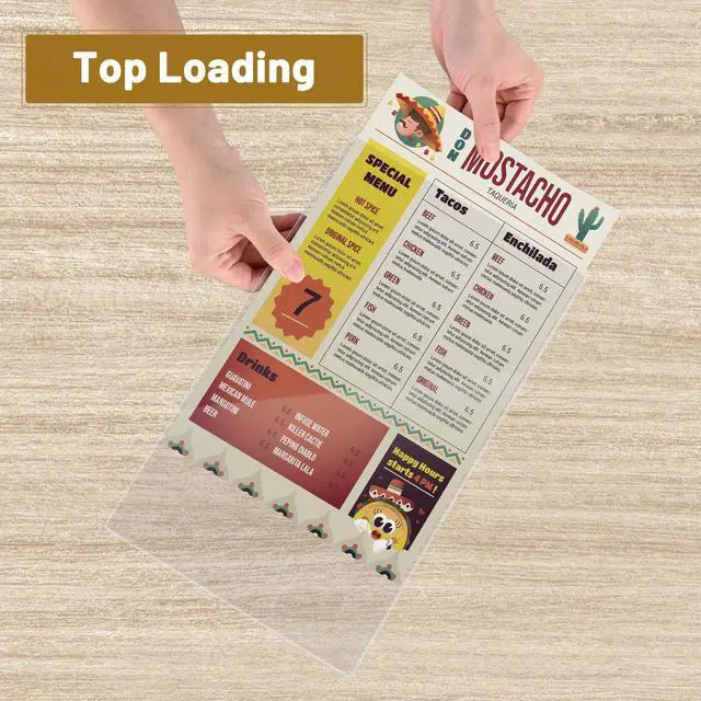- Safe & Durable - The clear protective menu Covers are made of transparent PVC material, safe, odorless & wear-resistant for your everyday use; Comes with heat-sealed edges to provide extra strength, keeping menu paper sealed tightly and also preventing fraying