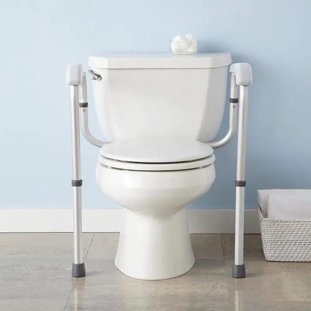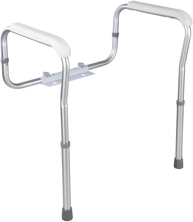 - Universal Toilet Safety Rail - Toilet Safety Rail provides stable support for the elderly, disabled and injured individuals to sit or stand in the toilet, ensuring safety and protecting from injuries; Universal for toilets with seat mounting holes distance measuring 5 1/2" in length, please measure your toilet's seat mounting holes distance before purchasing
