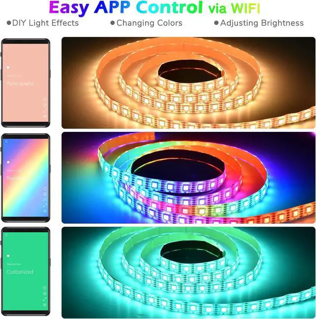 - Smart Voice Activation - 6.6ft Smart LED Strip Light can be connected to Google home, Alexa & Apple Homekit for turning on/off and changing color, brightness & light effect by your voice command, intelligent control making it a futuristic decoration to light up your life