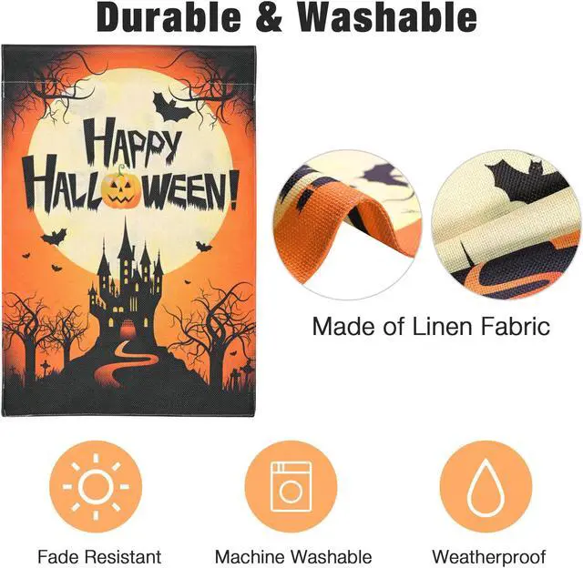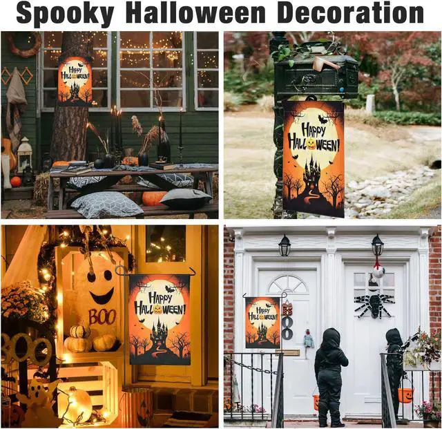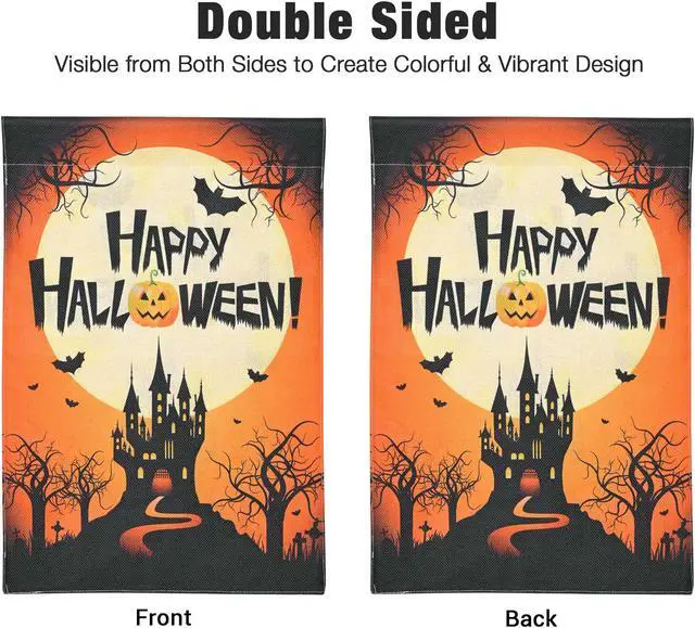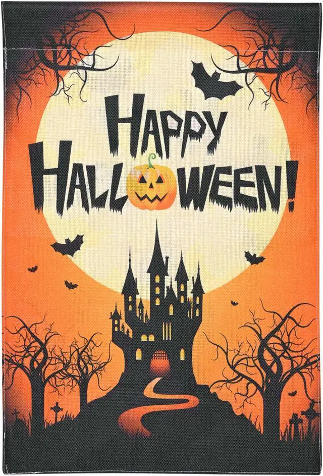 - Spooky Halloween Decoration - This 12"x18" Halloween Garden Banner comes with a castle, bat and jack-o-lantern pattern, complete with a full range of classic Halloween elements, making it bright and eye-catching, perfect for decorating your garden, backyard, lawn, porch, garden deck, patio or any other outdoor setting