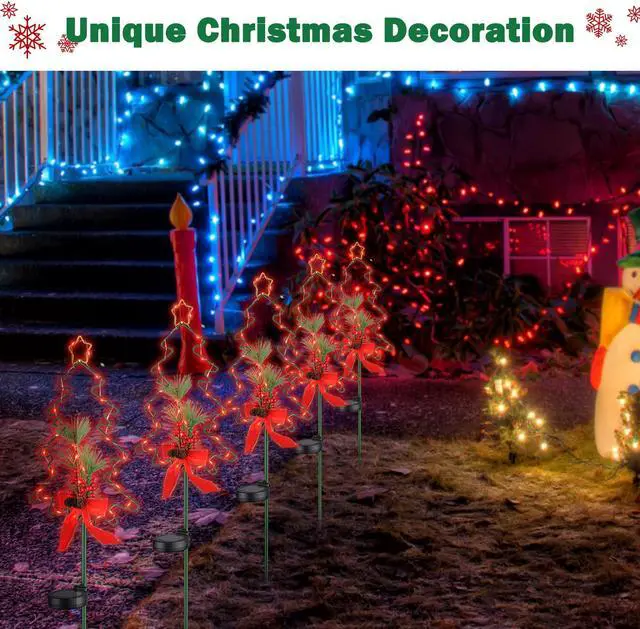 - Unique Festive Design - This Solar Stake Light is specially designed with a unique style featuring a metal Christmas Tree, pine cone & red berry, along with red twinkling LED lights wrapped around to blend in perfectly with the natural backdrop of winter season, adding a festive Christmas atmosphere to your landscape