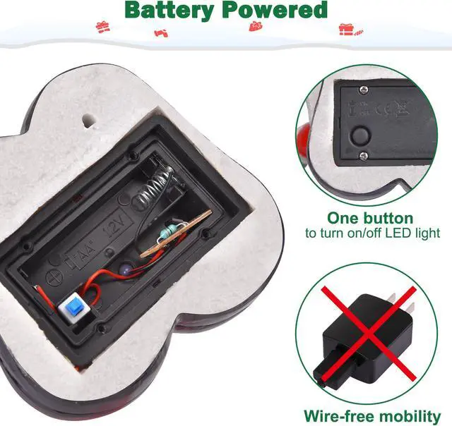 - Battery for Santa Light & Snowman Light: 1.5V AA Battery