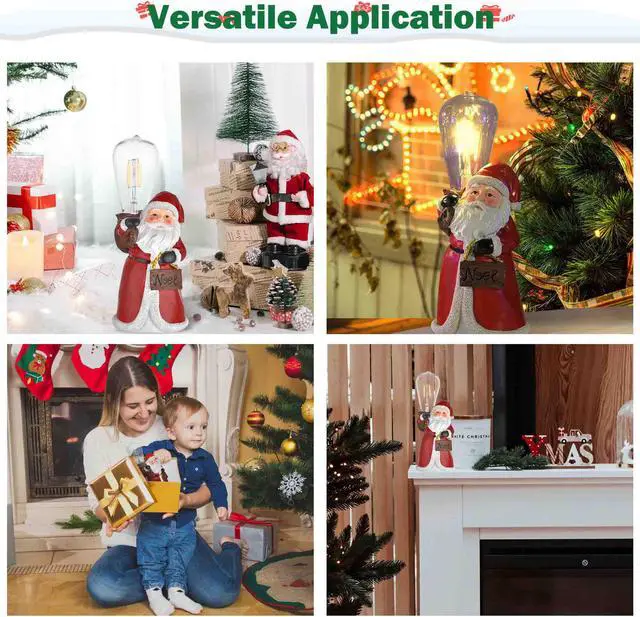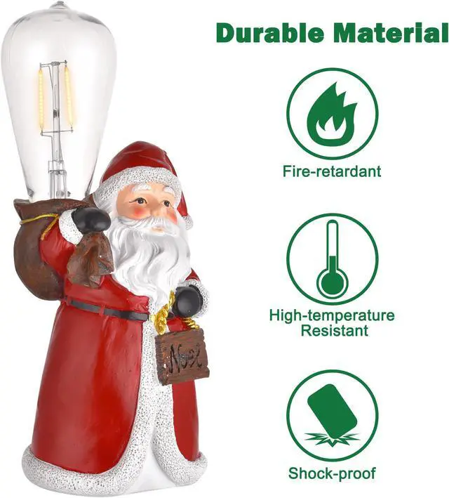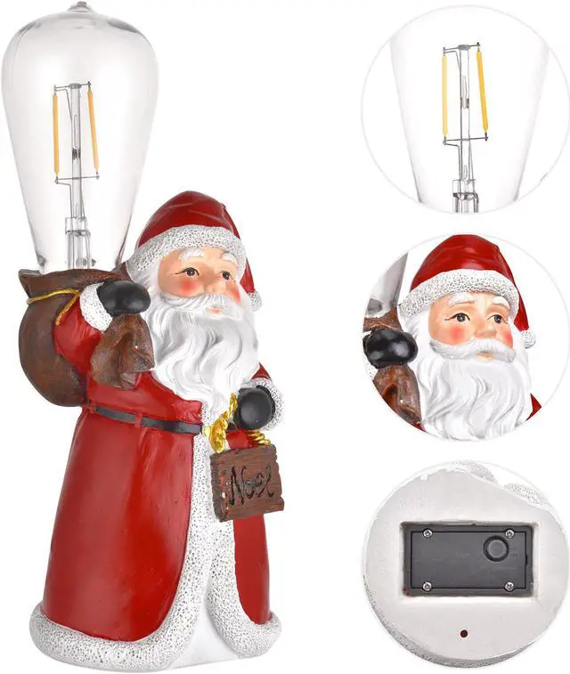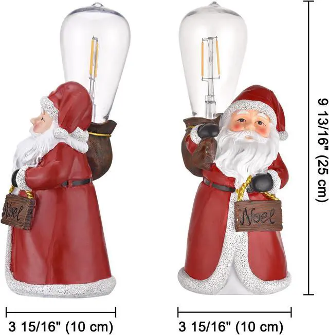 - Tabletop Christmas Decoration - 4"x4"x10" Santa Claus Light features beautifully hand-painted Santa figurine carrying a large LED bulb on his back, one button to light up and fill your room with Christmas miracle, perfect decoration to boost your holiday spirits, also ideal gift for your friends & family