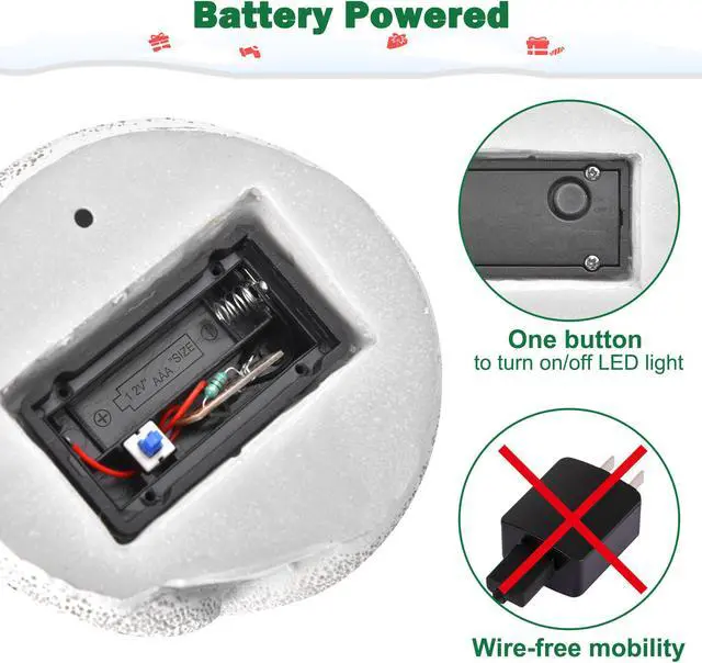 - Battery Powered - One button to turn on/off the LED light via switch in the bottom, no power cord for ensuring convenience and wire-free mobility, can be placed anywhere you want to decorate without restrictions