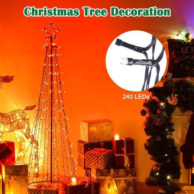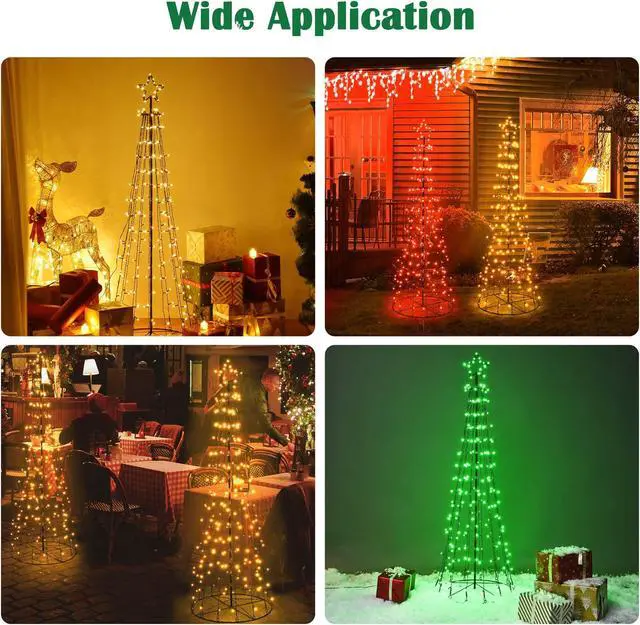 - Christmas Tree Decoration - 5 ft Cone Shaped Christmas Tree with lighted top star finial & 240 multi-color LED lights twinkling around the tree, adds dreamy atmosphere for indoor & outdoor space, great addition to Christmas winter wonderland style displays for living rooms, offices, bars, restaurants, parties