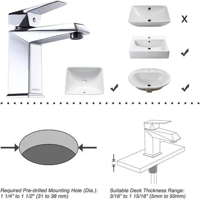 - High Compatibility & Quality Assurance - This faucet is fit for under-mount sink, 1 or 3-hole deck-mount sink, wall-mount sink and pedestal sink; Backed by Aquaterior's 5-year warranty & CUPC, NSF & CEC certification for quality assurance