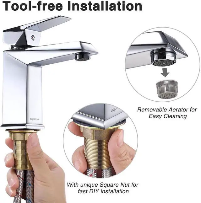 - Tool-free Installation - Features unique square nuts for easy manual installation without any tool, along with water hoses already installed on the faucet to save your time from exhausting assembly