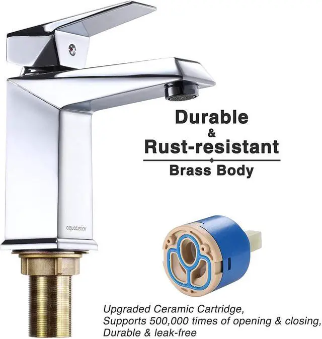 - Durability - Optimized ceramic cartridge structure is strong enough to withstand 500,000 times of opening and closing, effectively preventing leaking or dripping; Solid brass construction provides supreme durability, along with polished chrome finish for rust & corrosion resistance