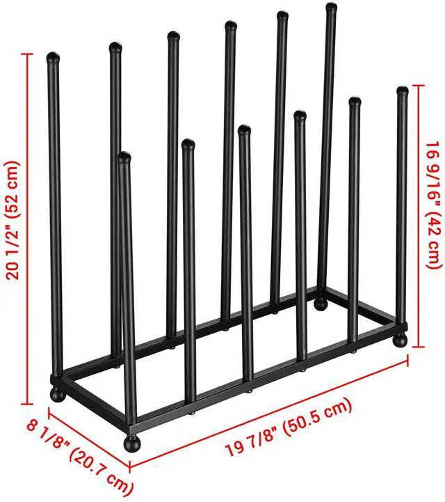 - 6-Pair Boot Rack - 19 7/8" x 8 1/8" x 20 1/2" Free-standing Boot Rack features 2 rows of posts in different lengths, shorter posts in the front for holding short boots, longer posts in the back for holding knee-high boots and rain boots, perfect storage solution for handling different boots, making boots organizing a breeze
