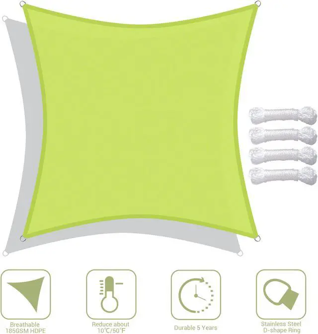 - HDPE Reduces Heat Transfer - Made by 100% brand new 185GSM HDPE material to efficiently reduce the temperature under sail about 50°F (10°C), excellent breathability to allow breeze to pass through, offers a cool and airy shelter on hot days