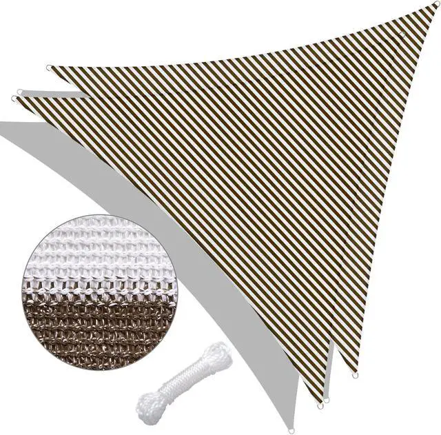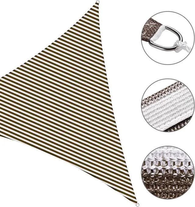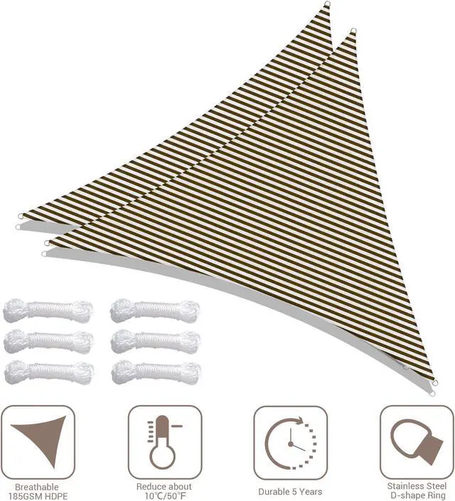 - Durable in Use - Triple stitched seam reinforces the edge to prevent fraying and ripping; Curved triangle shape helps the sail to keep tight; Heavy-duty nylon ropes included; Anti-ager composition added for long time service; 5-year warranty for quality issue