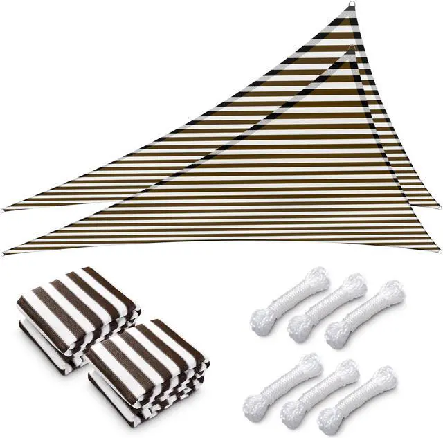 - Decorative & Effective Shading - 2 Packs of 25 ft Equilateral Triangle Sun Shade Sail, gorgeous color to attract attention, a beautiful decoration for backyard, balcony, terrace, patio, porch, pergola, deck and so on; Also, a perfect sun shade to offer a shelter near the pool for swimmers to rest