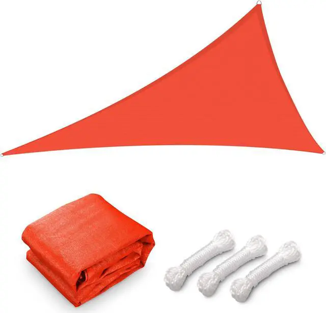 - Durable in Use - Triple stitched seam reinforces the edge to prevent fraying and ripping; Curved triangle shape helps the sail to keep tight; Heavy-duty nylon ropes included; Anti-ager composition added for long time service; 5-year warranty for quality issue