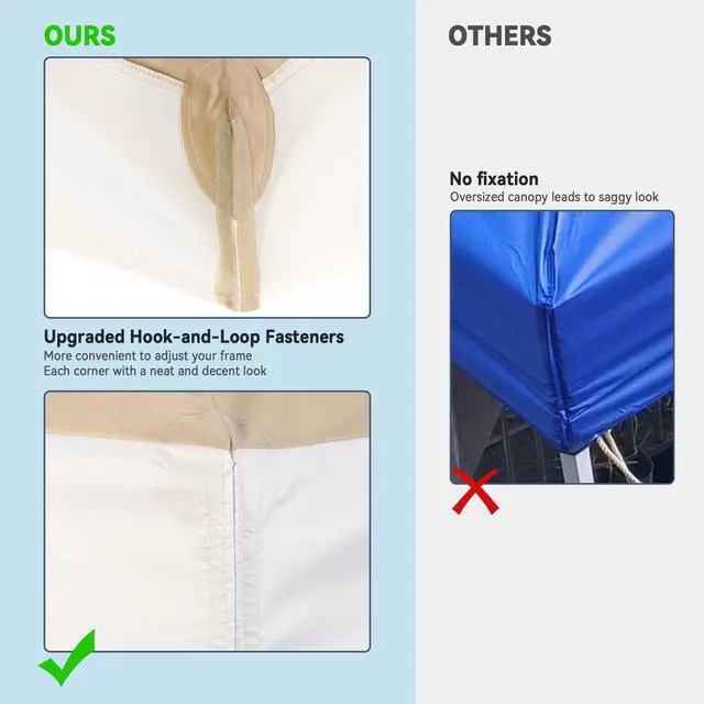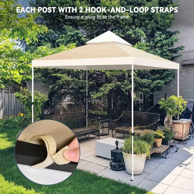 - Simple Installation - Easy to install by placing corners of bottom tier canopy over the corners of gazebo frame, pulling corners of upper tier canopy and inserting the prongs of upper frame into corner pockets; Comes with hook and loop fasteners for conveniently fixing the canopy onto the frames