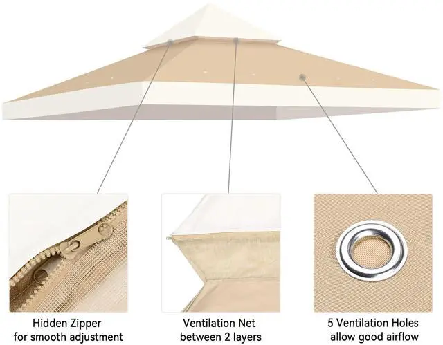 - Yescom Universal 2-Tier Replacement Canopy Top for 10x10 ft dual-tier gazebo frames, gives you and your friends a perfect outdoor shade to enjoy this unique leisure time; Features soft and subtle color to perfectly blend in versatile scenarios like garden, backyard, poolside, front porch