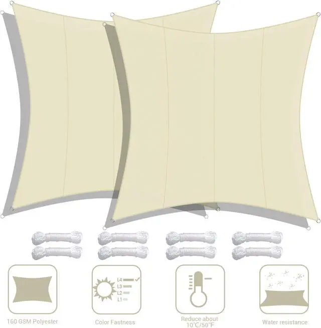 - Decorative & Effective Shading - 2 Packs of 16x16 ft Square Sun Shade Sails, gorgeous color to attract attention, a beautiful decoration for backyard, balcony, terrace, porch, pergola, poolside, deck and so on; Also, a perfect awning sunscreen shade to cool down patio for outdoor party with friends or families