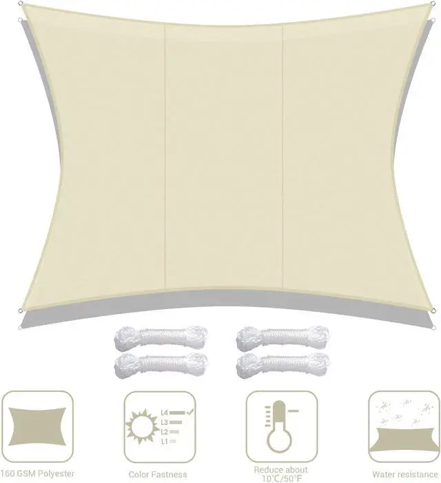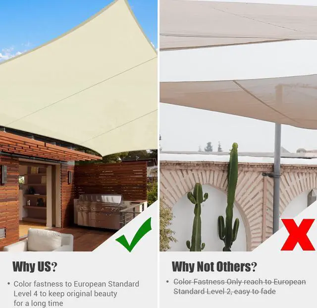 - Durable in Use - Double stitched seam reinforces the edge to prevent fraying and ripping; Curved rectangle shape helps the sail to keep tight; Heavy-duty ropes included; Color fastness of European Level 4 to ensure original color to last for a long time; 2-year warranty for quality issue