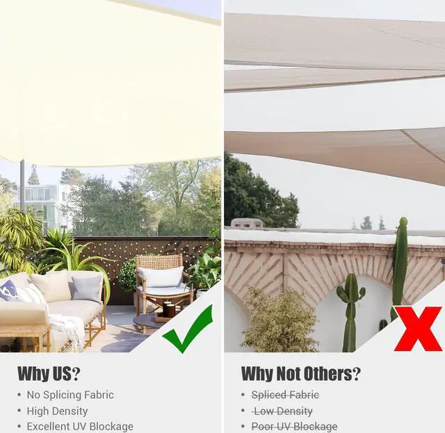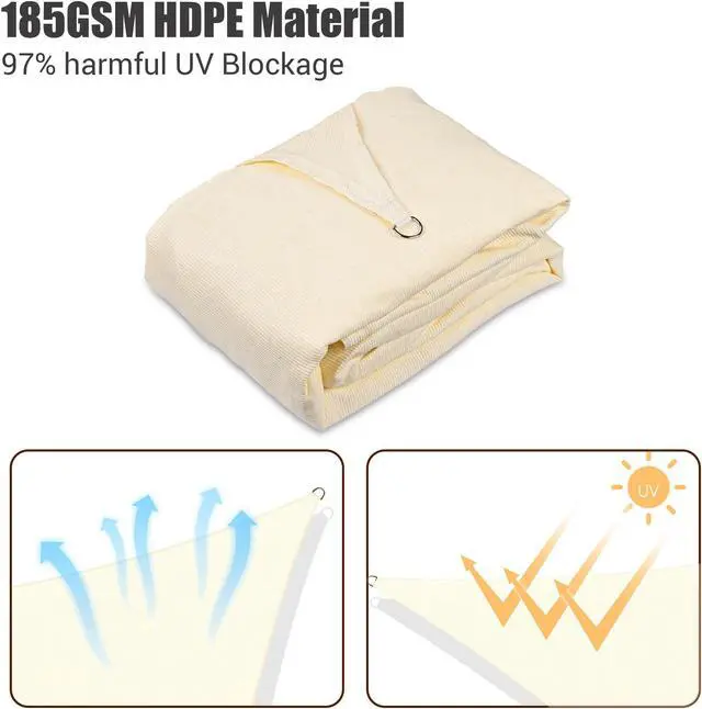 - HDPE Reduces Heat Transfer - Made of 100% brand new 185GSM HDPE material to efficiently reduce the temperature under sail about 50°F (10°C), excellent breathability to allow breeze to pass through, offers a cool and airy shelter on hot days
